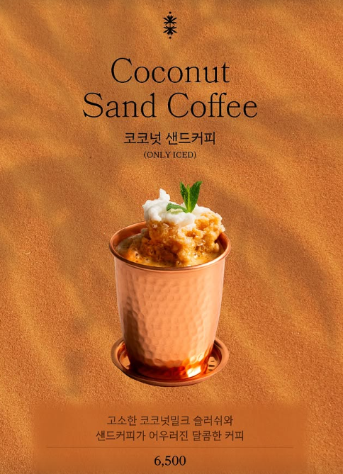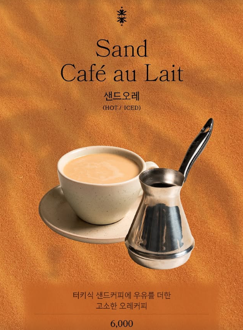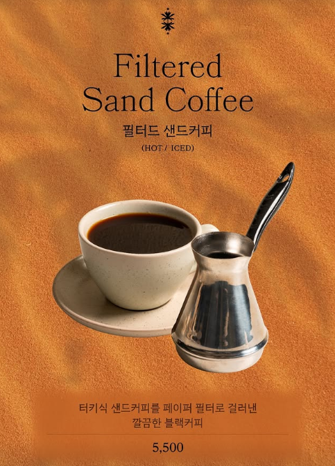 오아시스80 카페의 시그니처 메뉴는 샌드커피와 피스타치오 카다이프 와플입니다. 샌드커피는 튀르키에식 전통 방식인 모래 위에서 직접 끓여내는 독특한 방법으로 만들어지며, 일반적인 커피와는 또 다른 풍미를 자랑합니다.