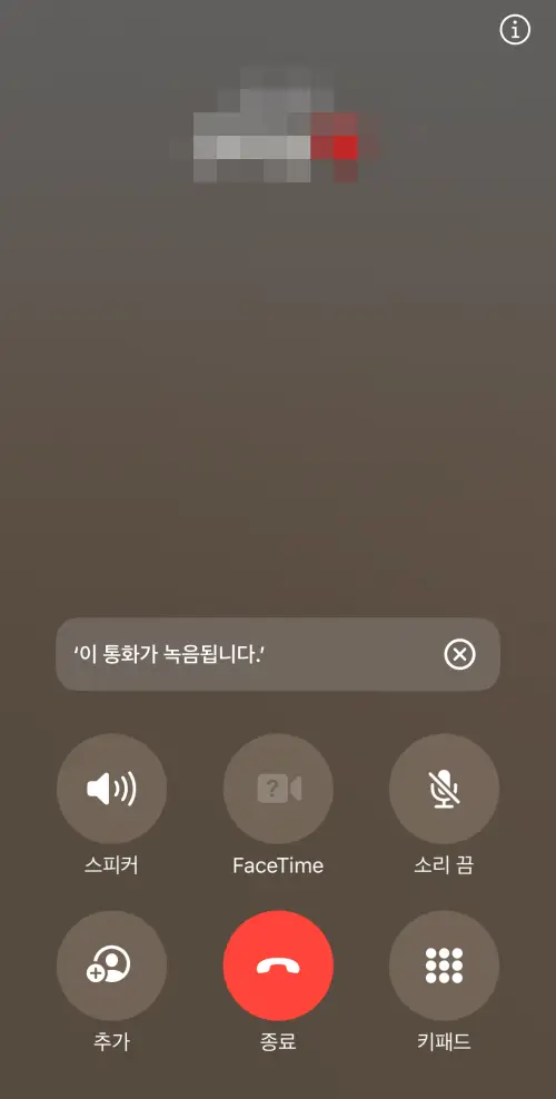 통화 화면 상단에 표시된 녹음 버튼을 클릭하면 녹음이 되며 '이 통화가 녹음됩니다', '이 통화는 더 이상 녹음되지 않습니다'처럼 상대방에게 통화 녹음 안내가 나갑니다.