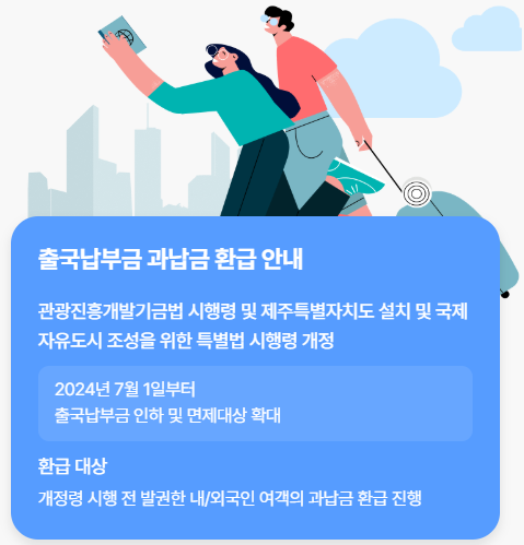출국납부금 환급 신청 대상은 2024년 6월 30일 전에 발권한 여객 중 2024년 7월 1일 이후 출국한 대상입니다.