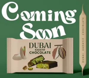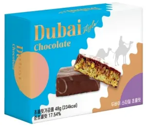 두바이 초콜릿은 버터에 카다이프 면을 볶아 바삭하게 만든 다음 피스타치오 크림과 골고루 섞어 초콜릿 사이에 넣은 초콜릿입니다. 픽스 디저트 회사에서 만들었으며, 음식 인플루언서 마리아 베하라가 관련 영상을 올리면서 유행을 하기 시작했습니다.