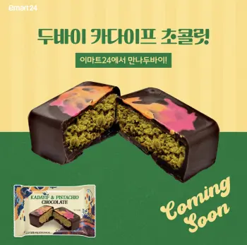 이마트 24는 8월 초에 두바이 초콜릿 외에는 튀르키에 전통 디저트 바클라바에 피스타치오를 넣은 초콜릿도 함께 출시할 예정입니다.