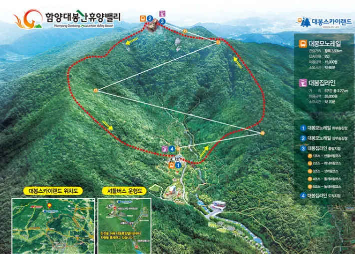 함양 대봉산은 아름다운 자연경관이 어우러진 캠핑랜드, 집라인과 모노레일 체험을 즐길 수 있습니다. 모노레일은 대봉산 정산까지 3.93km를 오르며 짜릿한 스릴과 아름다운 풍경 경치를 한눈에 감상할 수 있는 대표 체험 코스입니다. 대봉산 모노레일에 대해서 알아보겠습니다.