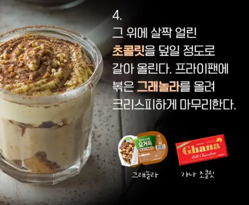 - 얼린 초콜릿을 덮어주고 프라이팬에 볶음 그래놀라를 올려줍니다.