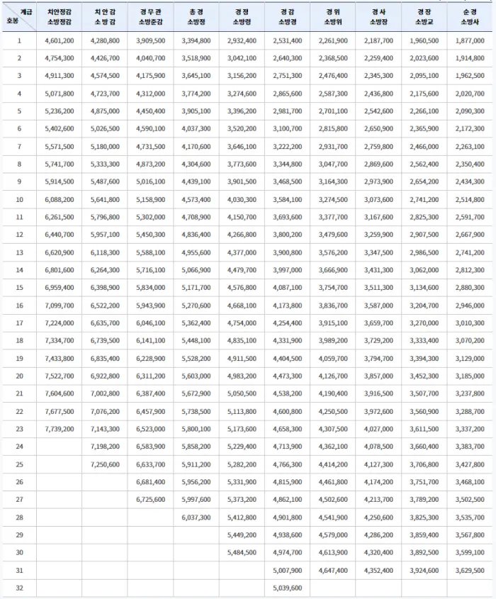 2024년 경찰공무원 봉급표