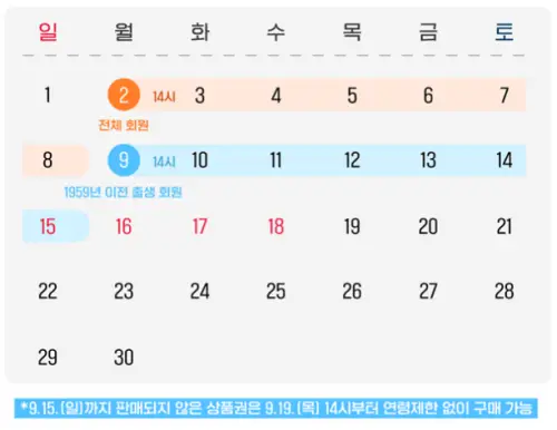 - 1959년 이전 출생자 : 2024년 9월 9일(월) 14시~9월 15일(일)