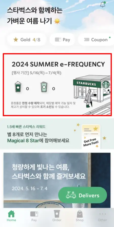- 스타벅스 모바일 앱에서 e프리퀀시 배너 클릭