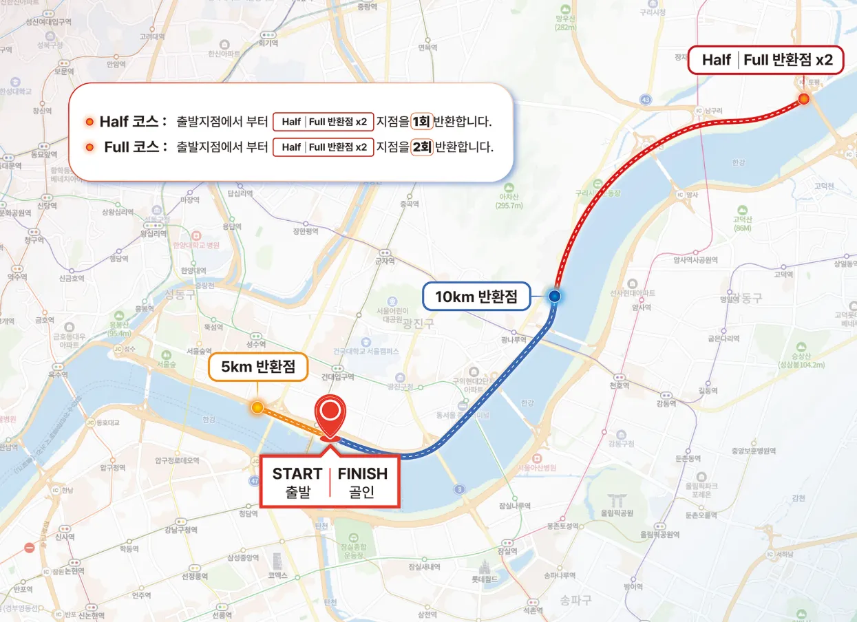 - 종목 : 풀코스, 하프코스, 10km 코스, 5km 코스